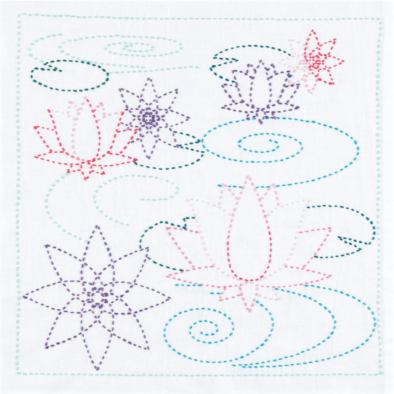 This sashiko kit from Olympus features a delicate lotus motif and comes with everything you need to get stitching, making it a great choice for beginners. The design is pre-printed on soft cotton fabric so you can simply follow the lines, and the included sashiko needle and colorful threads make each stitch smooth and satisfying.