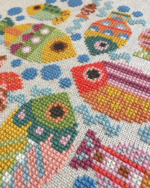 School is in session! Swimming with vibrant color and warm texture, his cheerful cross stitch pattern by Satsuma Street is part of a collection of designs featuring DMC's gorgeous new Eco Vita Organic Wool Thread.