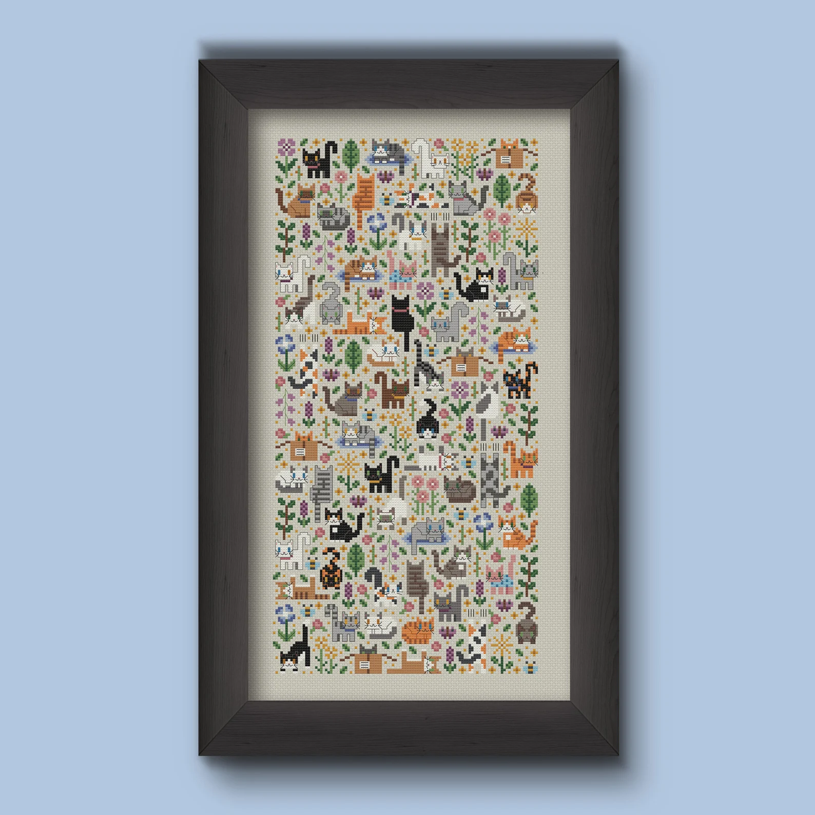 Playful and full of charm, Cat Garden by Una Buena Pieza is a delightful cross stitch pattern featuring a collection of cats lounging, stretching, and exploring among colorful blooms. Stitched in the brand’s signature pixel-art style, it’s packed with tiny details that bring each feline to life. A fun and relaxing project that’s sure to make any cat lover smile.