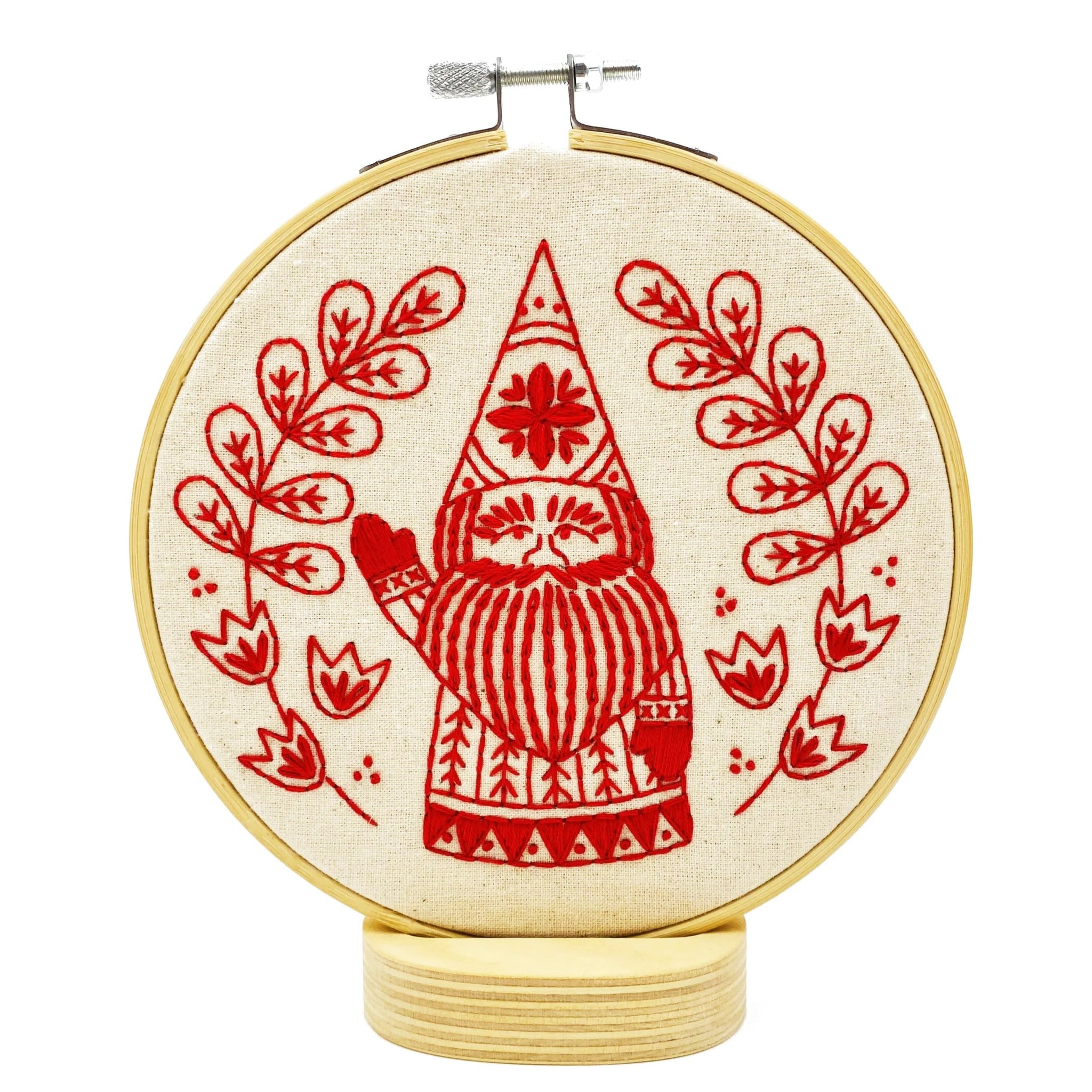 Bring a bit of Scandinavian whimsy to your stitching with the Nordic Gnome embroidery kit by Hook, Line & Tinker. This cheerful “Jul” gnome, stitched in festive red, makes a charming project for Christmas or a delightful piece to enjoy year-round.