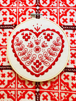Bring a touch of Scandinavian charm to your stitching with the Nordic Heart embroidery kit by Hook, Line & Tinker. Stitched entirely in rich red thread, this folk-inspired design is perfect for celebrating Christmas, Valentine’s Day, or simply adding a bit of handmade love to your décor year-round.
